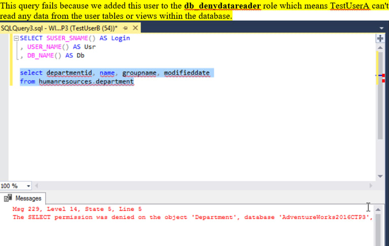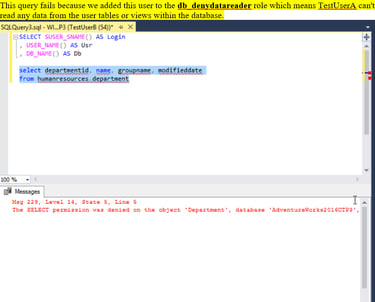 I implement comprehensive database security controls addressing injection attacks, unauthorized access, and data exposure. At the application layer, I enforce parameterized queries and prepared statements that prevent SQL injection by separating query structure from user-supplied data. Database architecture follows least privilege principles—users access data through stored procedures rather than direct table permissions, leveraging ownership chaining to execute privileged operations without granting underlying object access. I restrict access to high-risk features like xp_cmdshell and OPENROWSET, implement row-level security for multi-tenant data isolation, and encrypt sensitive columns using Transparent Data Encryption. My approach includes regular security assessments, automated vulnerability scanning, comprehensive audit logging, and disaster recovery testing to ensure resilience against both external attacks and insider threats