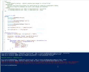 Experience using CMD and Powershell for Windows to configure and troubleshoot systems and applications. I often use powershell to easily query user and group details locally or in Active Directory which is crucial for diagnostics and automation. An example of a script, was one developed between myself and other techs to perform a posture check on our endpoint management software. The script would check for TCP connectivity to available servers and measure the latency, then set the server based on that information. The servers were set in the appropriate Windows registry values, and the script was added to Task Scheduler to periodically check connection status.